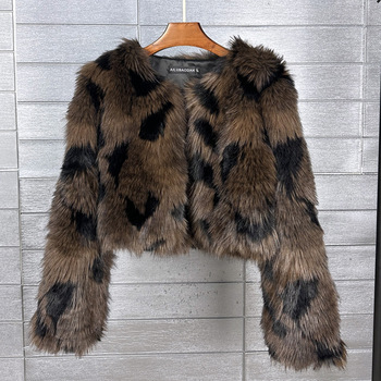 2025 अमेरिकी फ्लुफी काले सफेद हुड मोटी सर्दियों के fax फर जैकेट प्लस आकार के लंबे आस्तीन महिला ब्रांड कोट