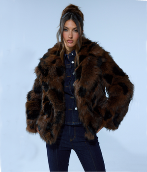 2025 אמריקאי ברדס שחור לבן מעובה חורף faux מעיל פרווה בתוספת גודל בתוספת גודל פלוס גודל שרוול ארוך גודל מעיל מותג נשים