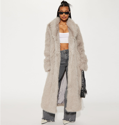 OEM סיטונאי בועת שועל פרווה מעיל נשים החורף הארוך מעיל רך מותאם אישית נשים פו פרווה נים
